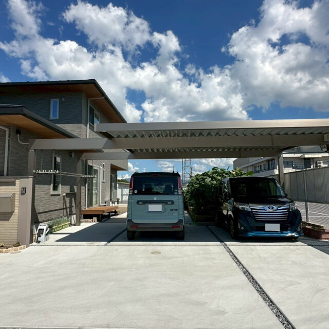 奥行きを感じるデザインのセミクローズ外構